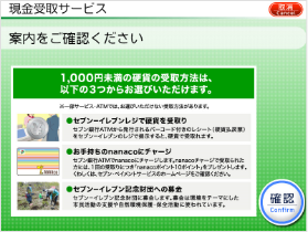 Confirm the way to receive coins on screen and press 確認.