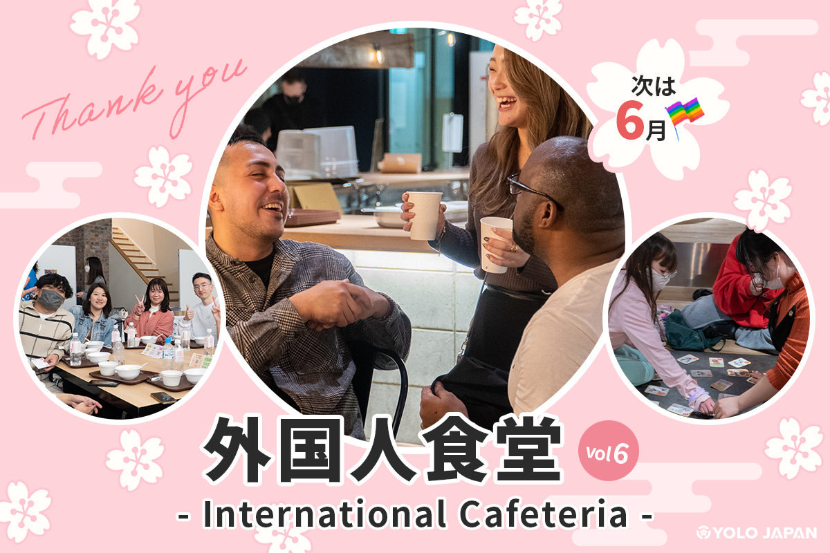 Next International Cafeteria will in in June - celebrating Pride Month🌈 When the schedule is fixed, we will announce date and time in the newsletter and Information page here: https://www.yolo-japan.com/en/information And don’t forget that YOLO STAND - International Meet-up is happening next Friday. Details can be found here : https://www.yolo-japan.com/en/information/details/180 Lastly, ,we want to hear from you about today’s event. It takes a few minutes so please fill out the survey here:
