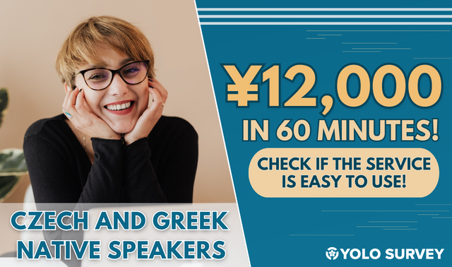 YOLO JAPAN is looking for people who are native speakers of Czech or Greek, who can also speak and understand Japanese fluently, to help test products and services under development of Japanese companies.