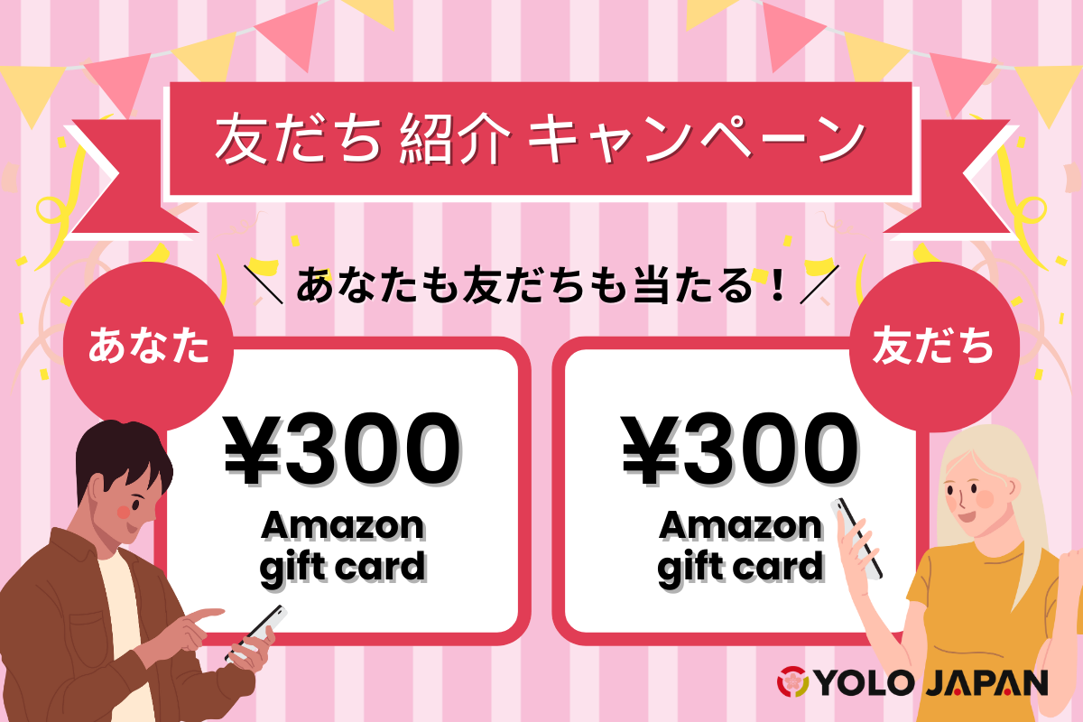 YOLO JAPANを友だちに紹介すると、あなたも友だちも300円のAmazonギフトカードをもらえます。