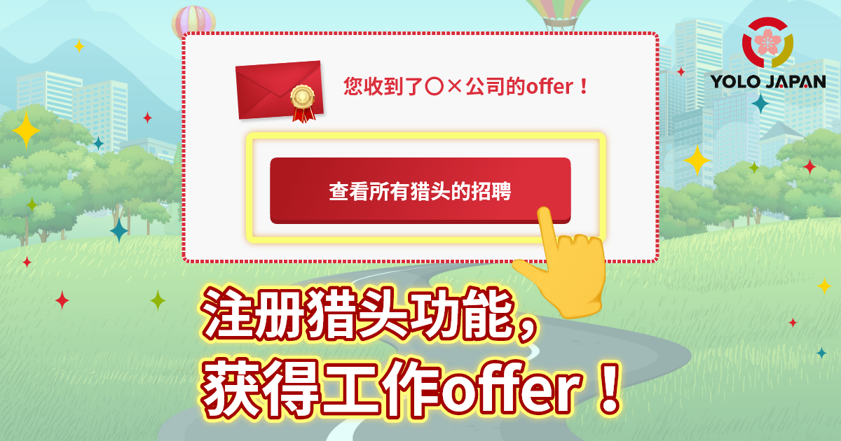 该功能可让将会将您的个人资料信息发送给正在寻找兼职或全职员工的公司,并获得工作机会。由于是来自公司的邀请,所以有望提高录取率,请一定要试用以下可免费使用的新功能“猎头功能”吧! 在 YOLO JAPAN 上发布招聘信息的公司中,
